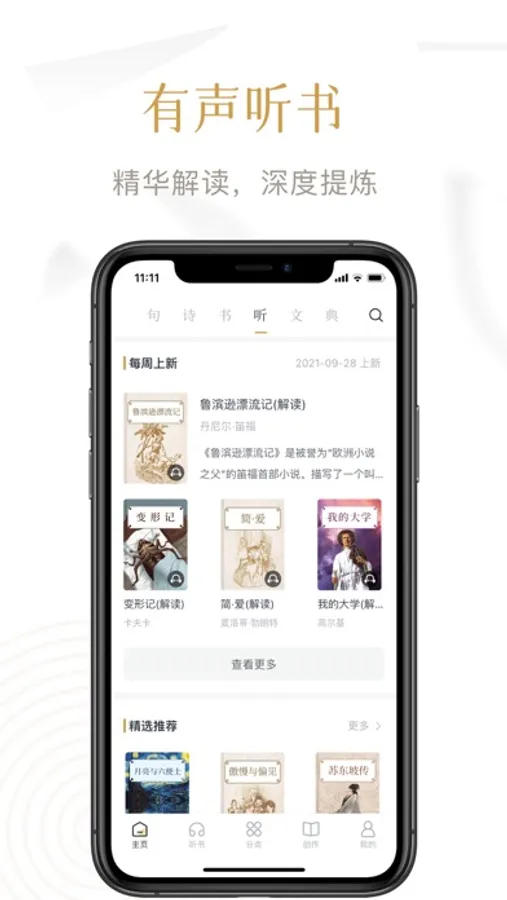 ※ 听:精选中外最经典的名著书籍,精华解读、专业录制,半小时音频对书中精华深度提炼。《百年孤独》、《月亮和六便士》、《苏东坡传》……精品听书每周更新。