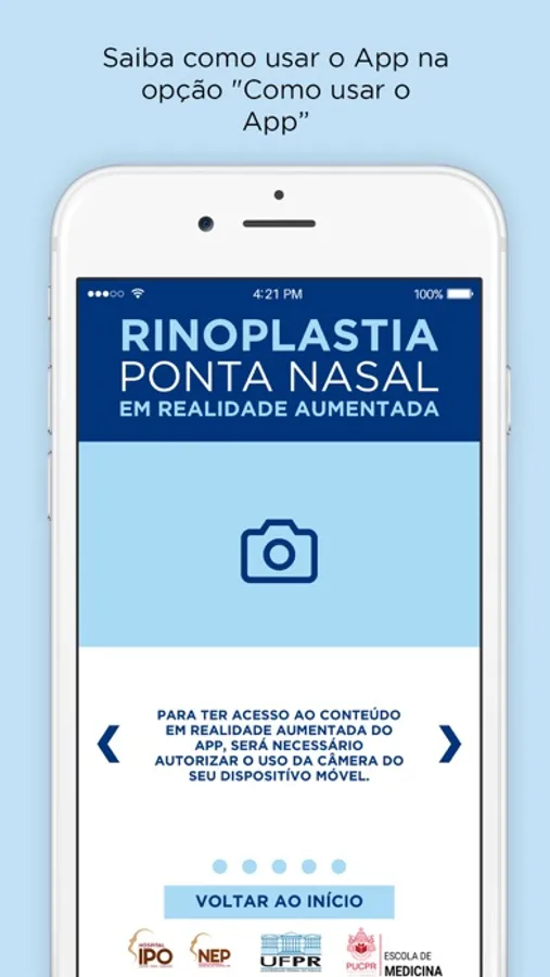 Para ter acesso ao conteúdo em Realidade Aumentada do app, será necessário autorizar o uso da câmera do seu dispositivo móvel.