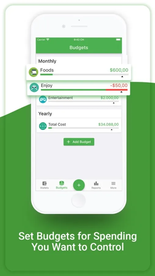 - Create budgets for the spending you want to control with one-time or recurring budgets. You can combine any number of categories and any number of wallets you want, and monitor your results on a daily basis. You will gain insight about how much you or your family have spent, and evaluate what you could cut back on, and plan for the future.