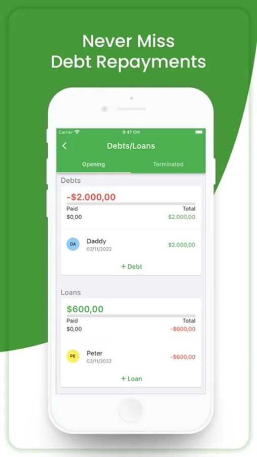 - Within a few taps on screen, you can track your daily spending, income, budget, saving, debt, bill and payment.