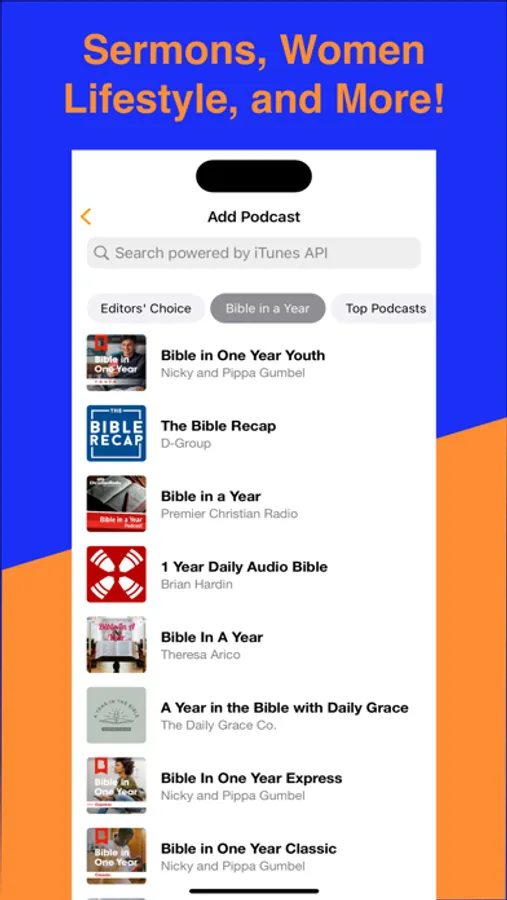 - Find your favorite Christian podcasts with integrating iTunes searching feature.