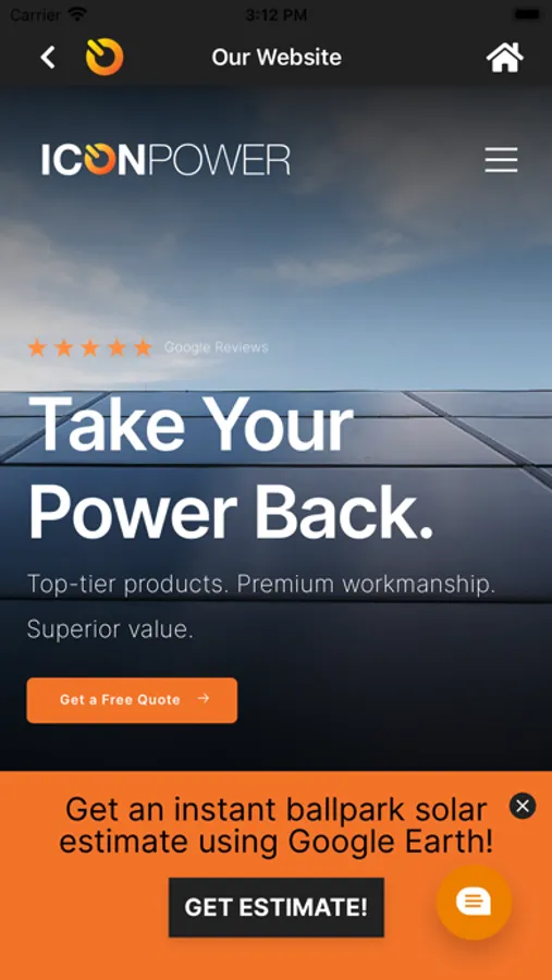Icon Power is a free app available for anyone to download and is used for those that want to communicate with Icon Power. It is as simple as downloading the App and register as a user. Once registered, you can begin communicating right away. We will reach out to you via push notifications and in-app messaging to improve your overall buying experience. Once you purchase your new Solar from Icon Power, feel free to write a review. We appreciate your business.