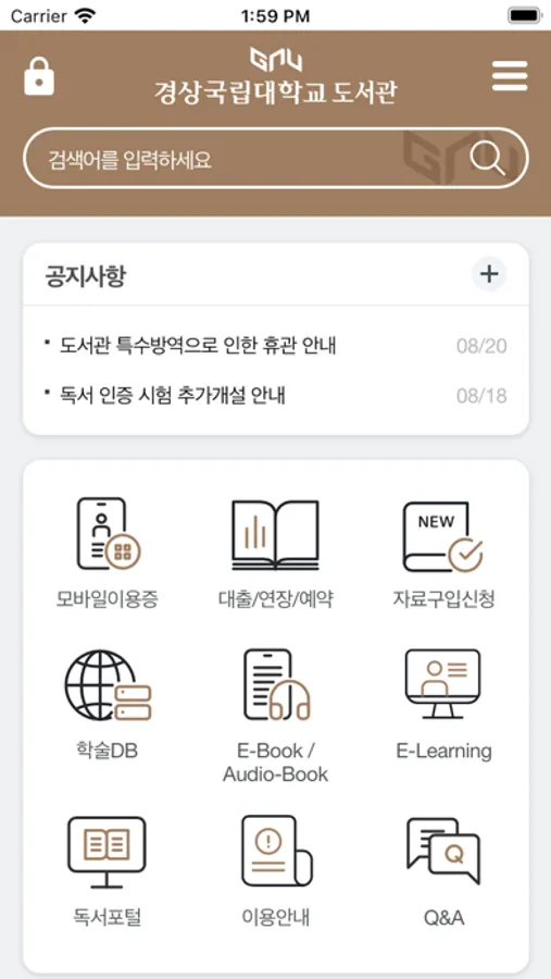 - 대출사항 조회 및 개인공지사항 서비스를 제공합니다.