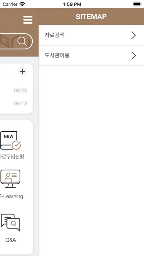 - 희망도서구입신청, 학과별자료이용안내, 전자책, 사서에게 물어보기 서비스를 제공합니다.