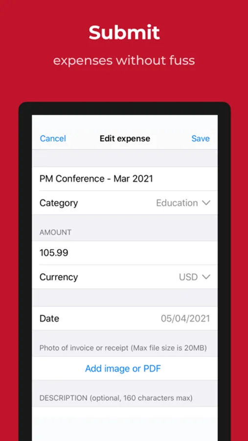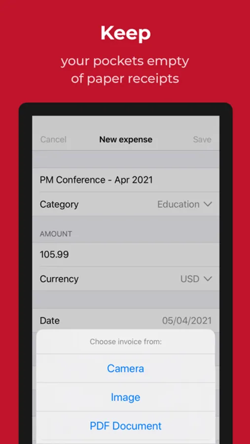 2. Create reports and add photos of receipts to them: forget that you must store all receipts, tickets, tax reports to share them to the bookkeeping;