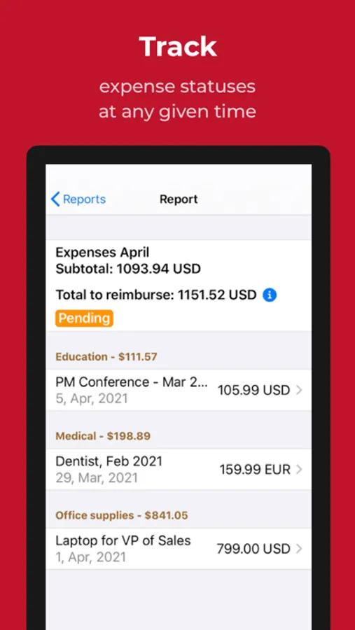 4. View the statuses of expense reports, whether managers have reviewed and approved them or not.