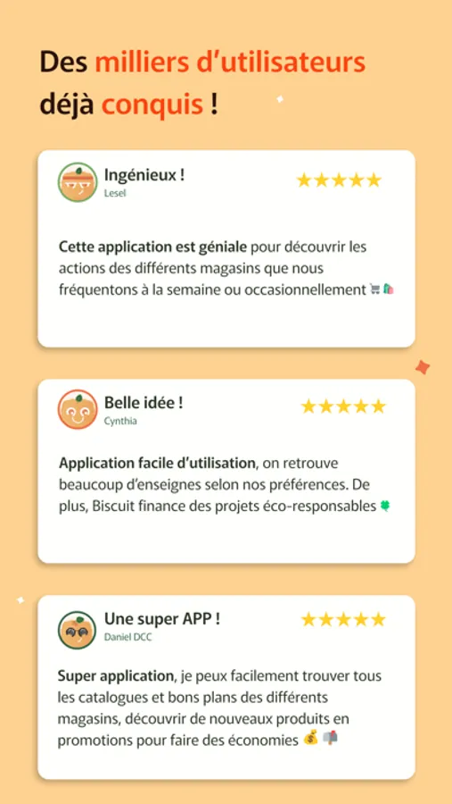 Que ce soit pour consulter les catalogues des enseignes autour de vous, ajouter des magasins en favoris, repérer des promotions et des bons plans avant une virée shopping lors des soldes ou Black Friday, économiser sur vos courses alimentaires, Biscuit est là pour vous.