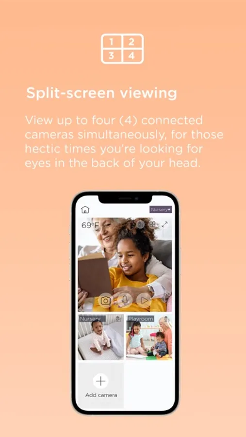You can view up to four (4) connected cameras simultaneously, for those hectic times you’re looking for eyes in the back of your head. Simply select a live preview to bring to the main viewing window where you’ll then be able to use all the features you would use in the normal viewing mode.