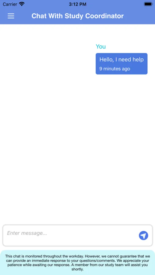 Subjects can interact with the study team via secure chat.