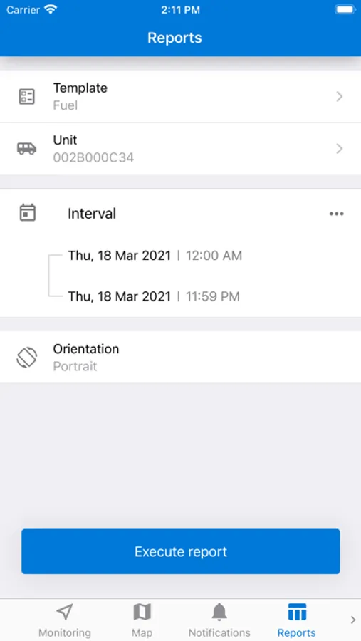 - Reports. Generate reports by selecting the unit, report template, time interval, and get analytics right where you are at the moment. PDF export is also available.
