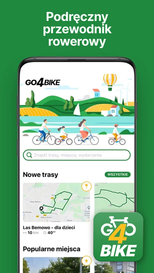 Aplikacja Go4Bike umożliwi Ci przeglądanie tras, miejsc oraz lokalnych wydarzeń na interaktywnej mapie, zapisanie ich na swoim koncie w postaci planera wycieczek lub pobrania śladów gpx bezpośrednio na urządzenie. Bogata baza obiektów z licznymi opisami i zdigitalizowanymi materiałami multimedialnymi (zdjęcia, wirtualne spacery, panoramy 360° oraz audioprzewodniki) wraz z przygotowanymi propozycjami wycieczek rowerowych to gotowe pomysły na aktywny weekend i odkrywanie regionu. Funkcjonalność nawigacji połączonej z audioprzewodnikiem poprowadzi użytkowników krok po kroku przez warte uwagi obiekty znajdujące się na trasie. Z Go4Bike można również skorzystać przez przeglądarkę stron www.