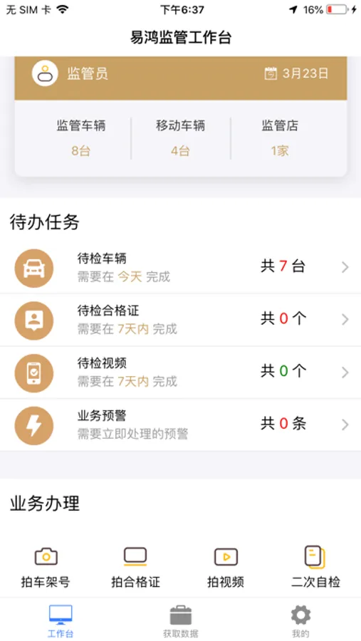 易鸿视控app系统可以自动获取盘库任务和需要盘点的抵质押车辆明细,可以根据对抵质押车辆车架识别、位置定位信息、车辆合格证和车场拍摄视频信息等多种技术手段,确定抵质押车辆是否符合金融机构摆放要求,如果出现异常后台系统会及时发出预警信息,满足车辆监管工作的要求。