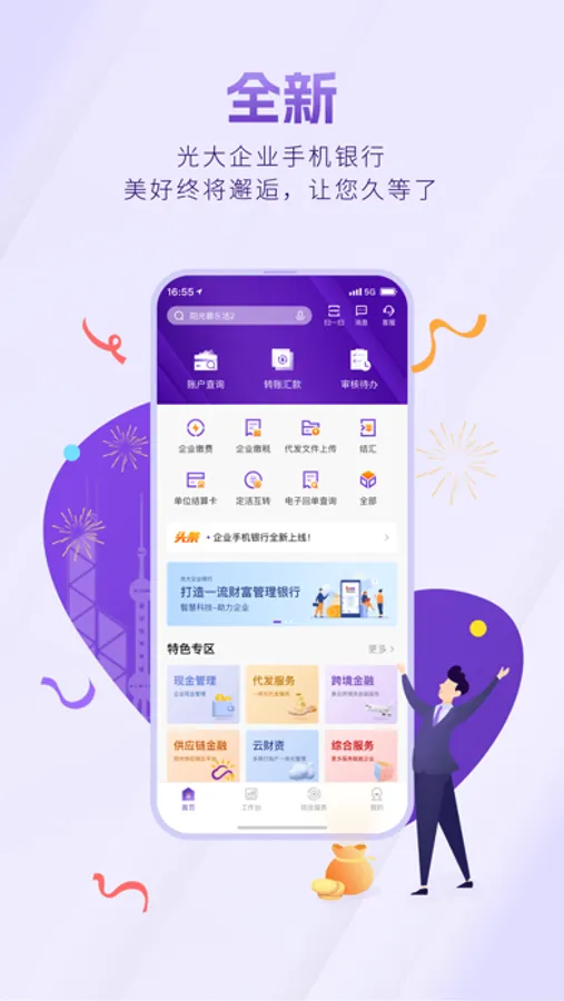 光大企业手机银行,致力于为每个优秀企业用户助力赋能,打造企业+生态体系。对手机银行设计及功能进行优化,继续延续“财富+”的手机银行品牌定位,以更丰富的金融产品,更优质的客户体验,积极打造“一流财富管理银行”。