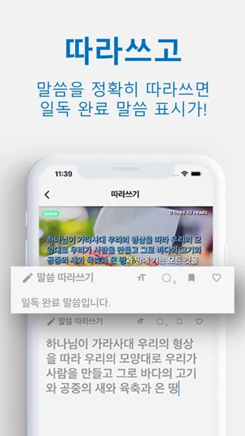 하나님 말씀을 따라쓰며 나만의 묵상의 시간을 가져보세요.