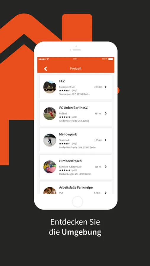 Informieren Sie sich z.B. über Geschäfte, Ärzte, Erstatten und über die Öffnungszeiten in Ihrer unmittelbarer Umgebung.