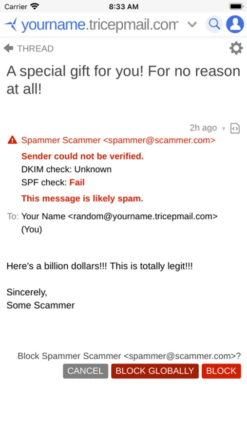 Privacy is priority. No tracking. No ads. Sandboxed. Separate addresses for everything you use helps keep you safe from exploits. Isolate mailboxes to specific senders if you want. Quickly block senders. Configure signatures, rendering, filtering, and notifications per device, globally, per domain, per mailbox, and/or per message. You're in control.