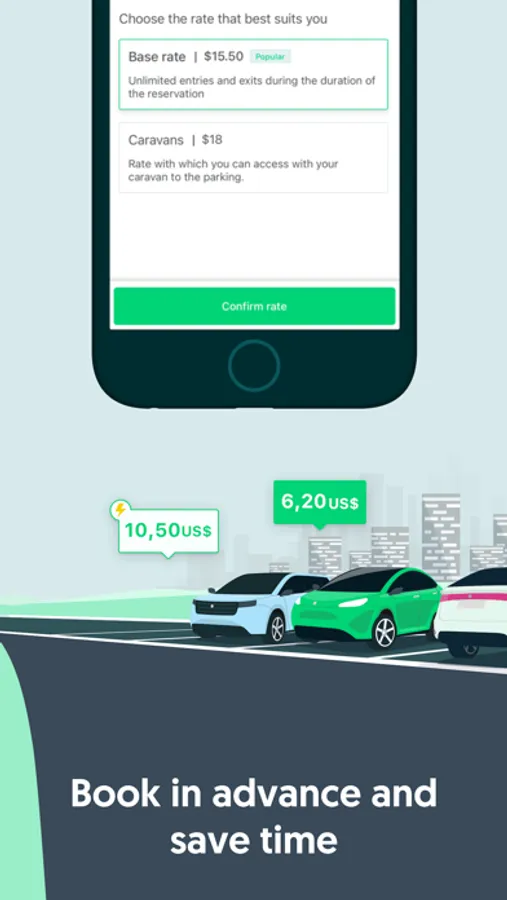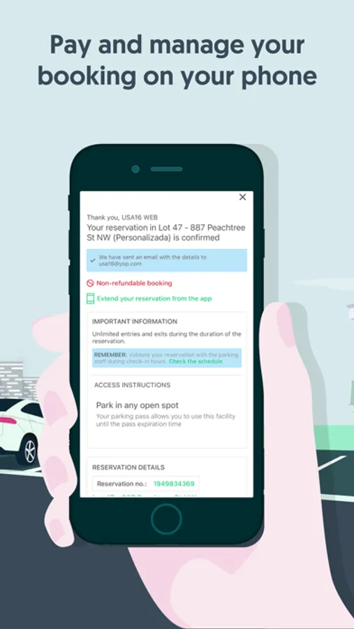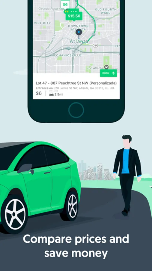 1. Choose where you want to park or make a reservation for the parking spot that best fits your needs.