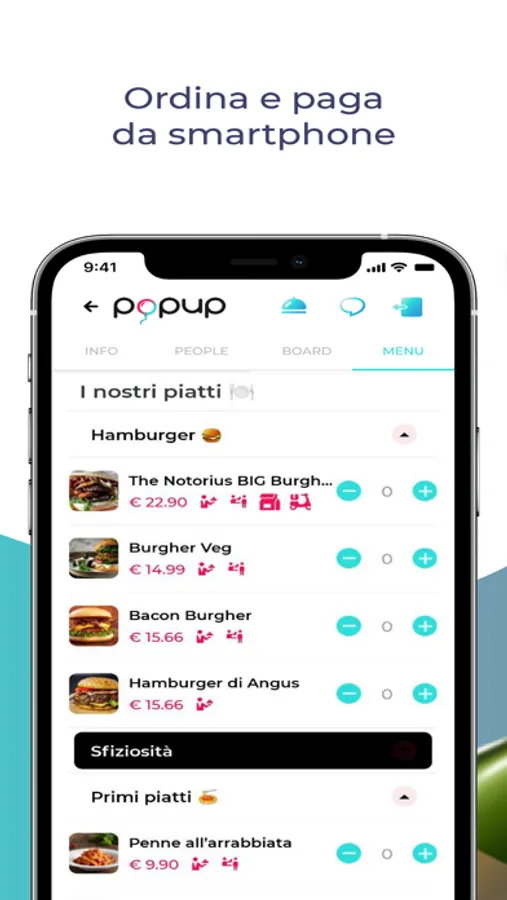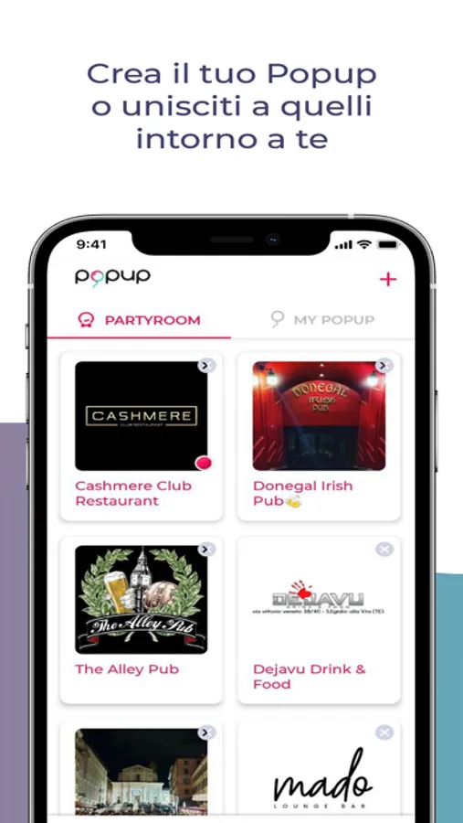 All'interno di ogni Popup, oltre a una bacheca dove condividere di tutto e il menù digitale, troverai la nostra Partyroom a rendere ancora più piacevole e unica la tua esperienza.