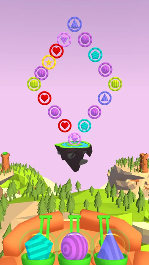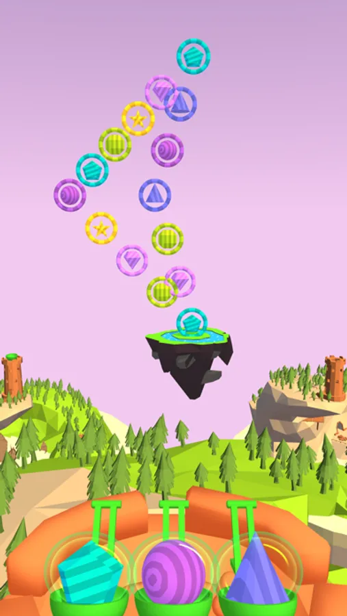 ◉The three catapults are filled with polyhedral missiles. Tap the one that is the same as the target, and it will automatically launch and track the target.