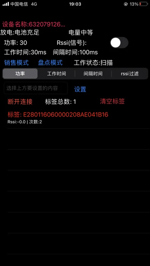该app是用于演示睿丰德生产的蓝牙读写器的功能的程序