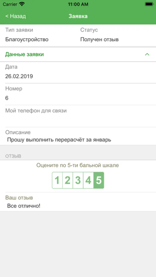 Возможность отправить заявку диспетчеру по следующим категориям: вопросы по оплате и задолженностям, пропуска, благоустройство, другое.