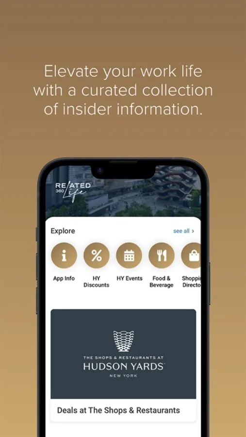 Related 360 Life is a mobile app for Related’s office tenants. The app offers a host of services and benefits that allow you to get the most out of your workplace—both within your building and the surrounding neighborhood.
