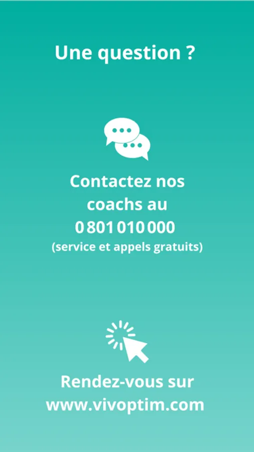 Une question ? Contactez nos coachs au 0 801 010 000 ou rendez-vous sur www.vivoptim.com.