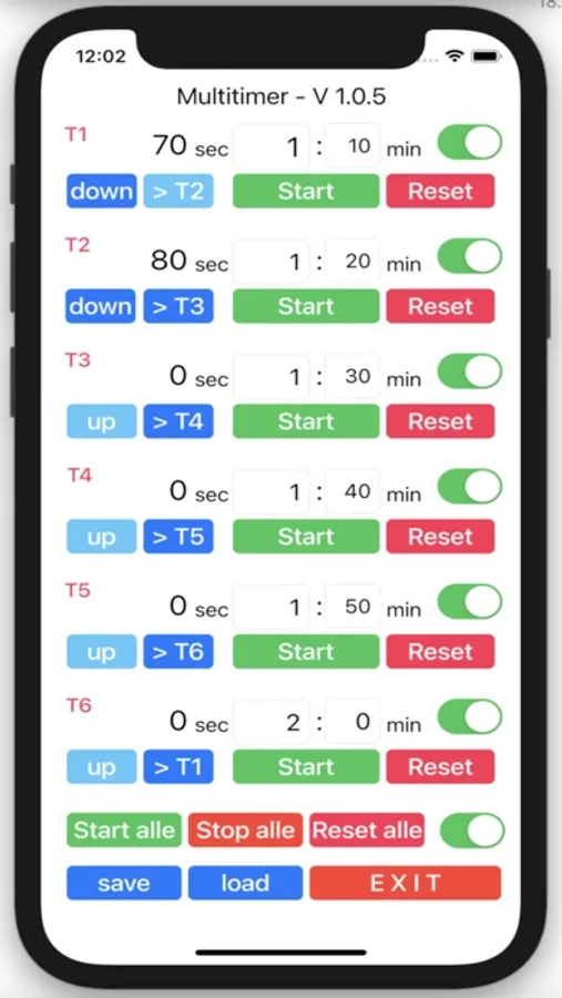Multitimer ist eine App mit 6 Timern die unabhängig voneinander laufen, aber auch kombiniert werden können. Die Timer können hoch laufen aber auch als Count down verwendet werden. Eine Zentrale Startsteuerung der Timer/Counter ist möglich. Ideal für Sport, Freizeit, zum Lernen nach Pomodoro, zum Kochen und für alle Zwecke zu denen man Timer oder Stoppuhren braucht.
