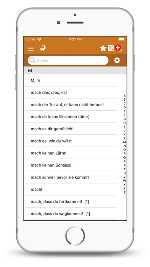 • Mit einem Wisch durch das Alphabet können sie via SCHNELLSUCHE direkt zur gewünschten Wortgruppe springen.