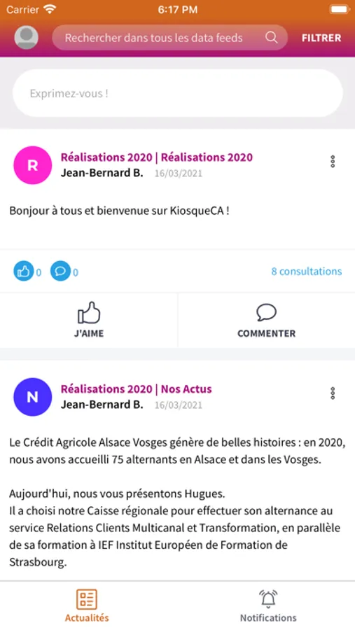 Grâce à l’application Kiosque CA, obtenez des informations exclusives sur les actualités de l’entreprise, les recrutements du moment et plus encore.