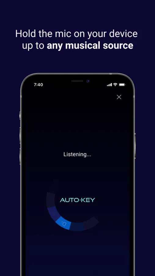You can use Auto-Key mobile on any audio coming from a speaker or from an acoustic instrument or a voice. Tap on the Auto-Key logo in the app home screen to find the key.