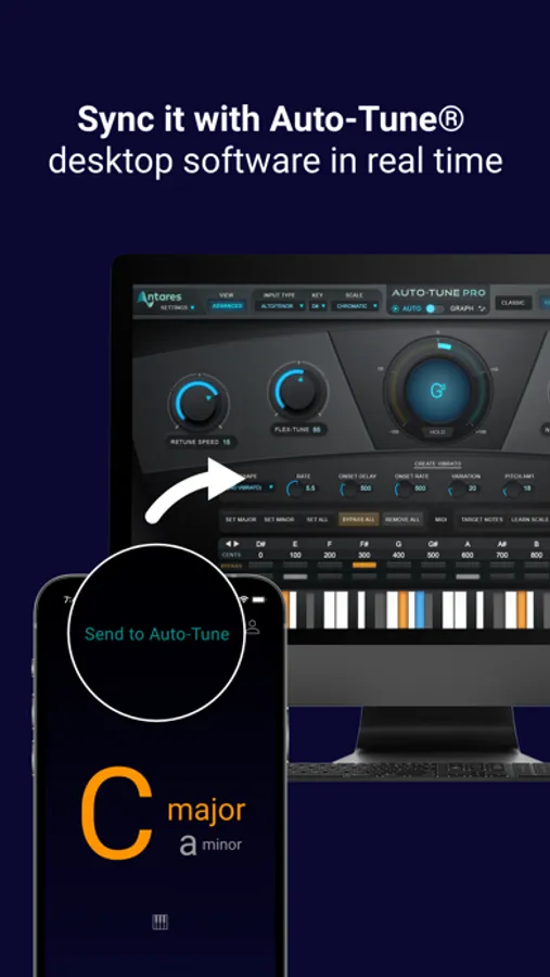 Detect the musical key of any tune whether in the studio or on the go. Instantly share and sync the musical key with your Auto-Tune session running on your computer DAW.