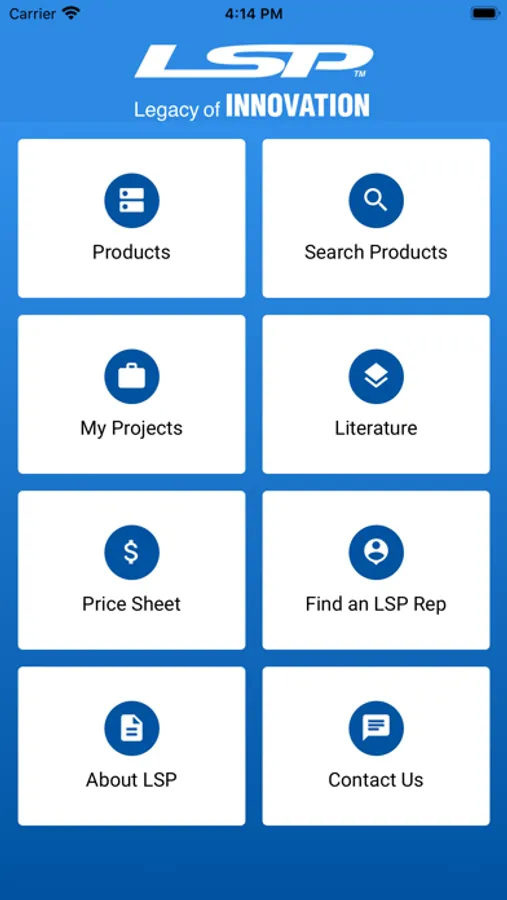 LSP Products interactive catalog app allows you to have the most up-to-date information on all products. Includes product information, images, literature, pricing sheet, finding a representative, customer services information, and the ability to set up project list.