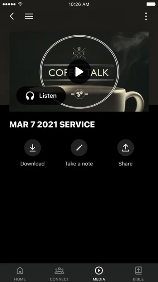 This app will help you stay connected with the day-to-day life of our church. With this app you can: watch or listen to past messages; stay up to date with push notifications; share your favorite messages via Twitter, Facebook, or email; and download messages for offline listening.