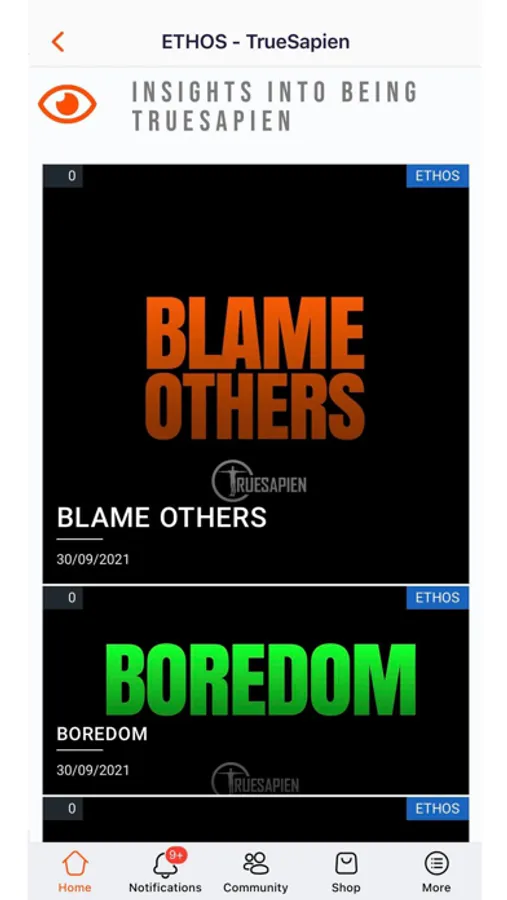 Access to the community area, view the latest on the Community Timeline and interact with other TrueSapiens