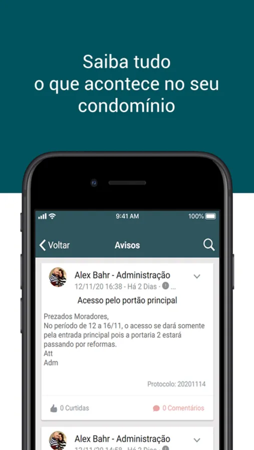 Receba notificações em seu celular de tudo que acontece no seu condomínio.