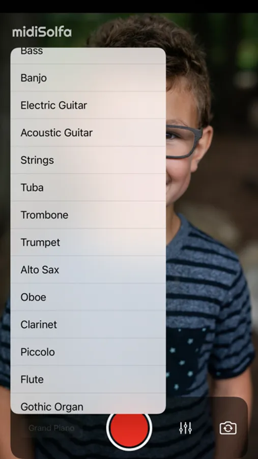 You can adjust the midi voice (i.e. piano, organ, trumpet, etc.), octave, and major key. You can also record your performance and save it to your photo library or share it with others via e-mail, text, social media, etc.