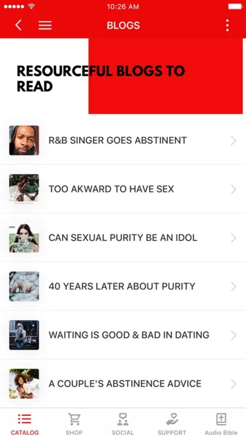 Gives you access to abstinence ( celibacy, purity, chaste ) resources. It has you covered with books, videos, blogs, podcasts, & so much more. Watch a video on how to overcome masturbation, or find a book to help you combat temptation!