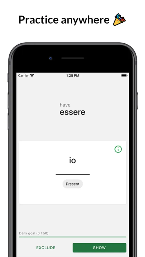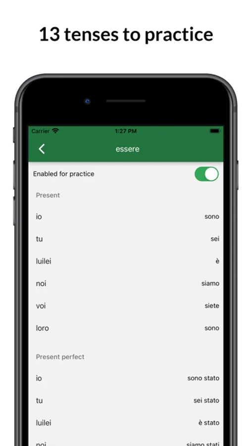 Verbare is the first app to make verb conjugation learning easy in Italian. Whenever you have a free minute, you can practice.