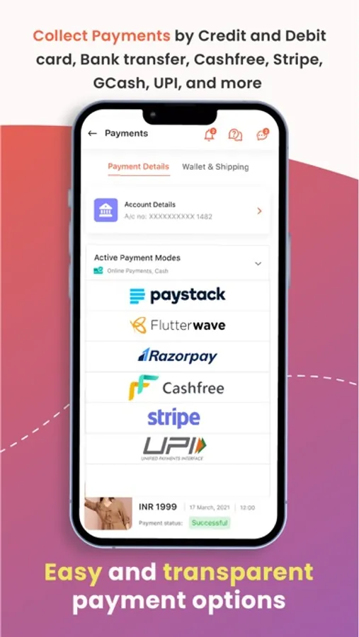 ● collect payments by credit and debit card, bank transfer, Venmo, PayNow, Cashapp, GCash, UPI & more custom payments