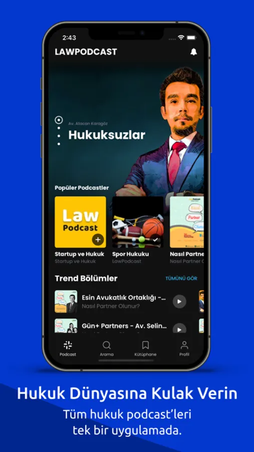 Hukuka dair güncel ve bilgilendirici içerik mi arıyorsunuz? Uygulamaya tıklayın ilham ve tecrübe dolu bir dünyaya erişin. Öğrenmek istediğiniz içerikler tek bir uygulamada buluştu. Ekibimiz tarafından özel olarak seçilmiş, ilgi alanlarınıza göre kişiselleştirilmiş öneriler ve podcast çalma listelerini keşfedin. Popüler kategoriler arasında Antitrust, Bilişim, Hayvan Hakları, Kişisel Veriler ve Kariyer yer alır.