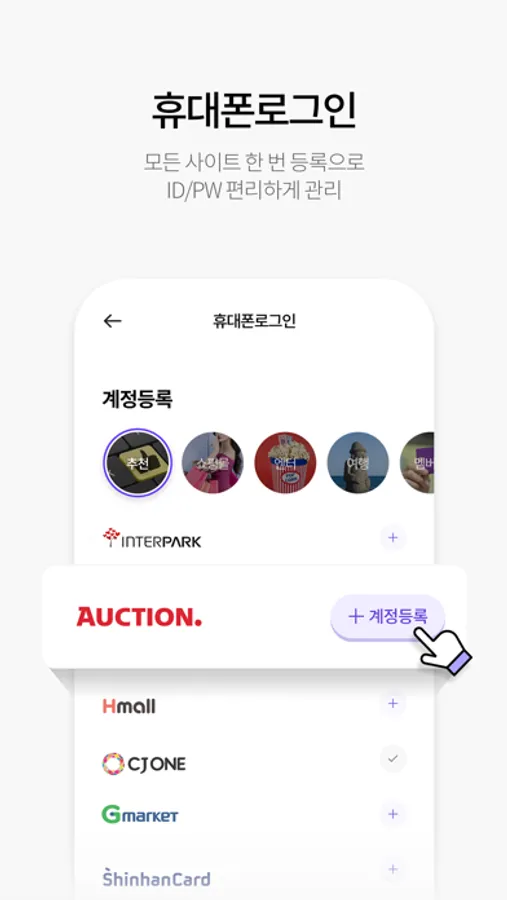 : 한 번만 등록하면 ID/PW 입력 없이 휴대폰 번호로 간편하게!