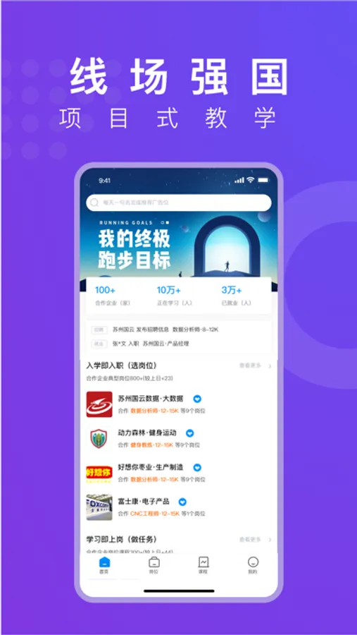 线场强国APP是全球范围内首创实现帮助企业定向培养人才、帮助教育机构招学员、帮助学员找到心仪工作的学习交流平台。