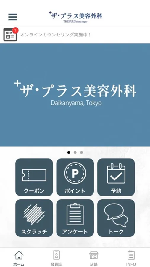 本アプリはザ・プラス美容外科代官山院の診察券及びポイント付与アプリです。チェックインでのご使用や、ポイント情報・お得なキャンペーン情報をご活用いただけます。
