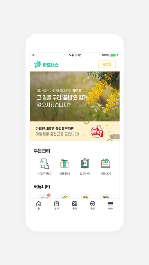 - Web(꽃비파트너스.com)과 연동되어 언제 어디서나 상품판매 주문내역 확인이 가능합니다.