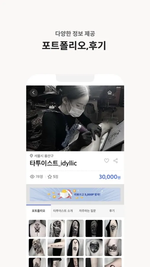 실제 유저들이 등록한 타투샵에 대한 후기와 리뷰를 확인해 보시고