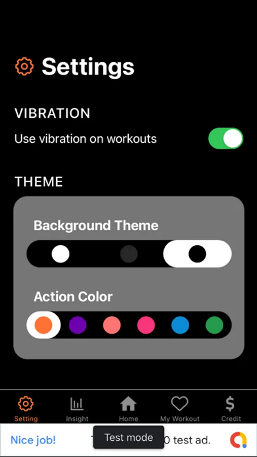 ** Switch to turn on/off vibration on workouts