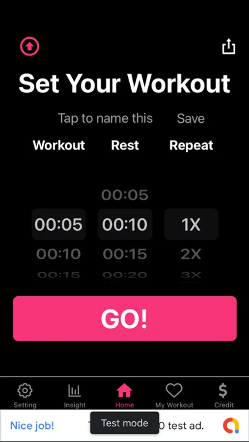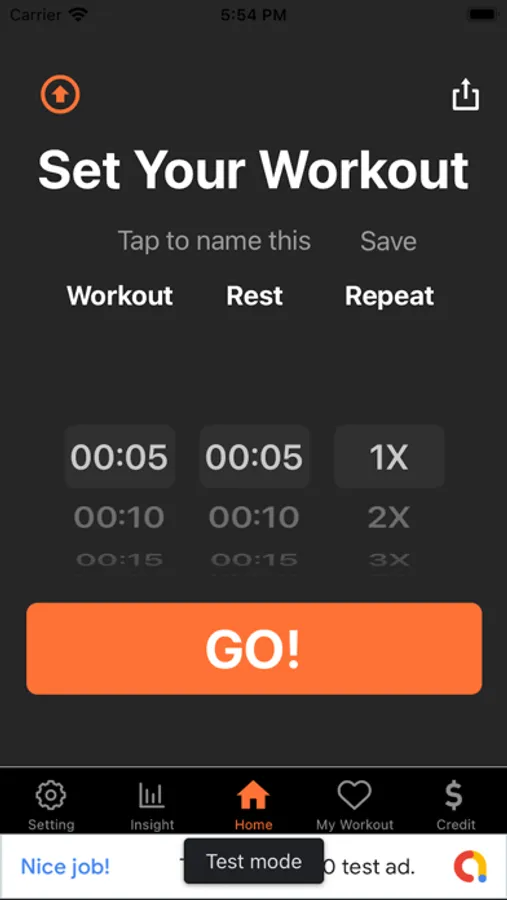 * Select work/rest/repeat