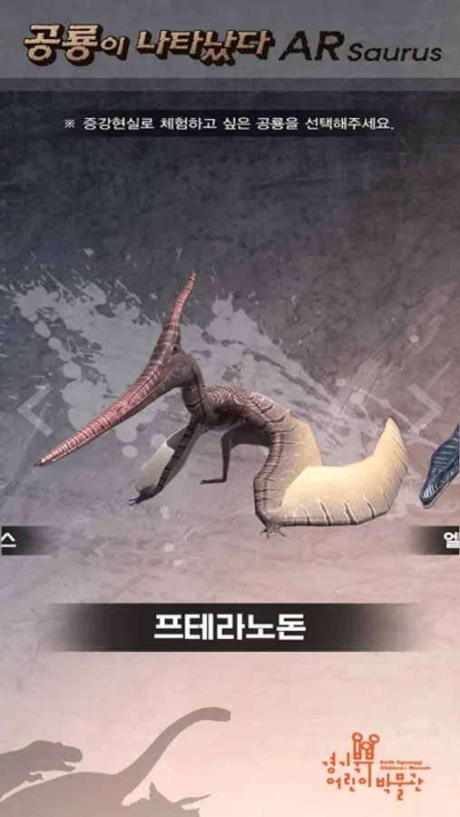 경기북부어린이박물관에서 증강현실(AR) 공룡을 보고 퀴즈로 풀어보는 모바일 체험서비스입니다.
