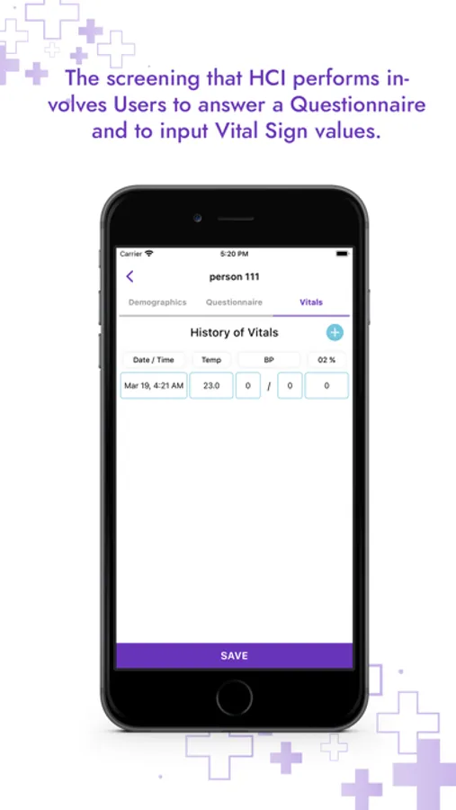 HCI (which stands for Health Check-In) Customer App is designed to help businesses to perform basic health screening of employees and customers (which we term as Users) entering their facilities. The HCI Customer App is designed to work in conjunction with the HCI Business App. Together, these apps serve as a Human Resource tool to provide a healthier environment among all people entering any facility that utilizes HCI. Through a series of monitored expiration of Questionnaire Answers and Vital Sign Inputs, Users of this App will be getting Notifications about their screening results